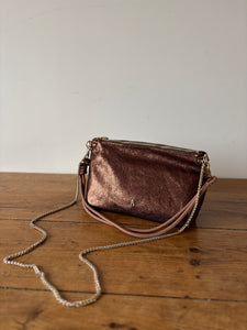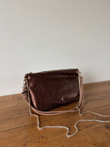 Anses / Bandoulières : Deux bandoulières amovibles (une sangle réglable de 65 à 120 cm) & (une chaine or clair non réglable).