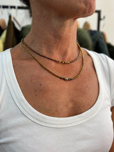 Matières : Pierres Hématites et acier inoxydable avec un plaquage or fin 18 carat. (Les deux colliers sont faits dans les mêmes matières).