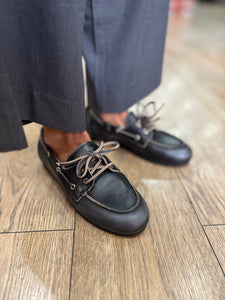 Les chaussures sont vendues avec deux lacets : Un en cuir (de rechange), et l'autre en tissus pour un effet plus "sport".