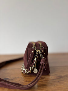 Anses / Bandoulières : Une anse à chaîne (réglable et amovible) et une bandoulière en cuir réglable et amovible.