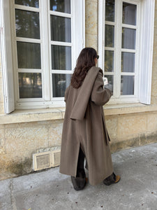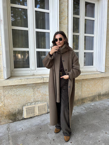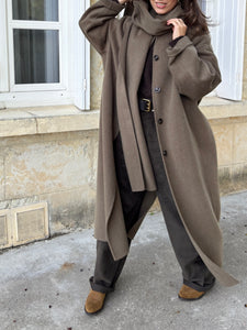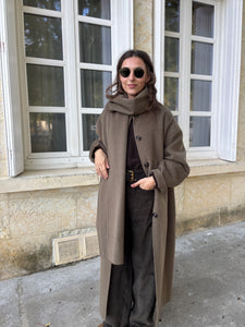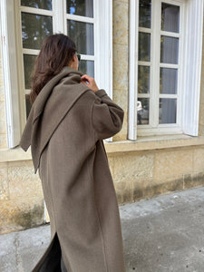 Forme du col : Encolure ronde avec une grande écharpe intégrée mais amovible par des boutons.