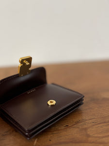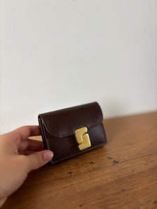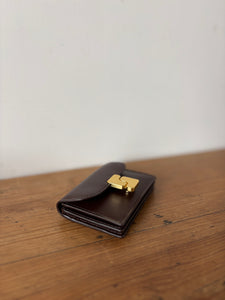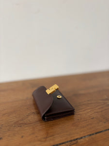 Porte-cartes monogramme à rabat. Métallerie doré. Fermeture par bouton pression.